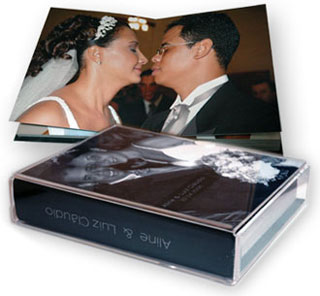 Poderá ser escolhido diversos materiais como Estojo, Luva, Caixa Presente ou uma luva como esta que é feita de material acrílico. Montamos seu álbum Tradicional, Encadernado ou Panorâmico.